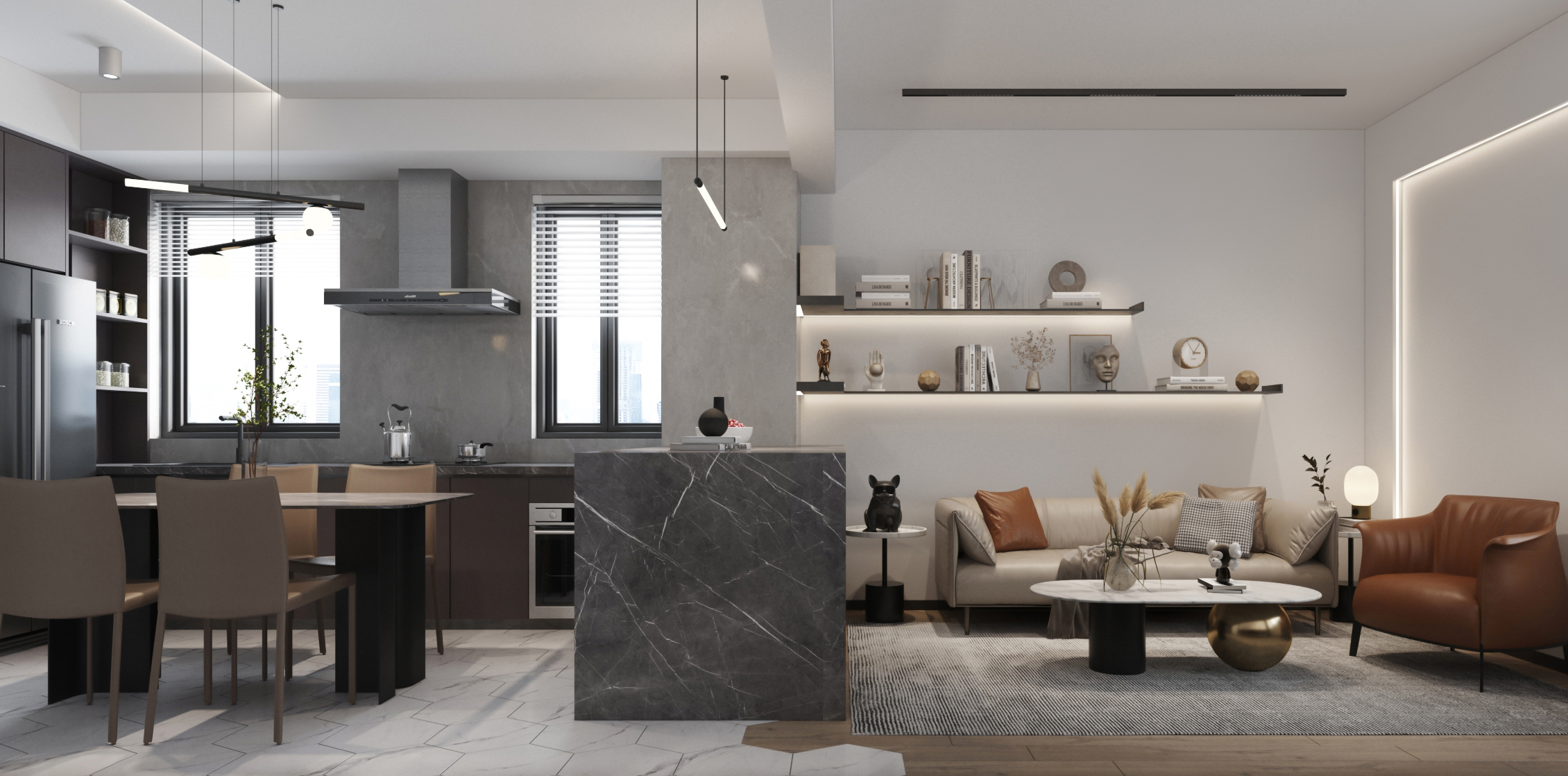 福州家裝案例 | 簡單的黑白灰來搭配空間的色彩,簡潔大氣