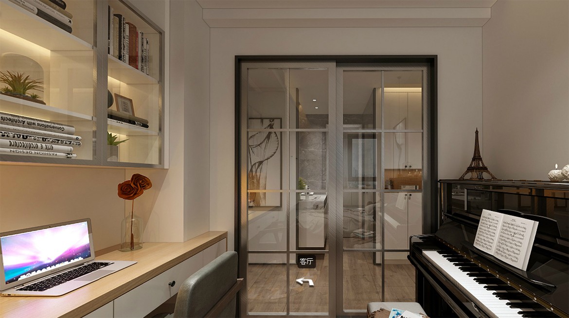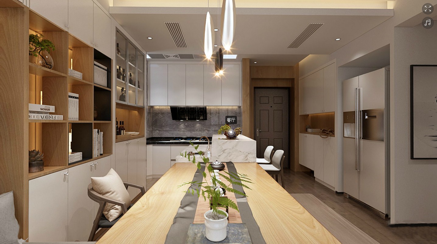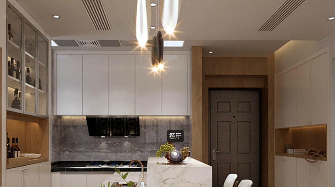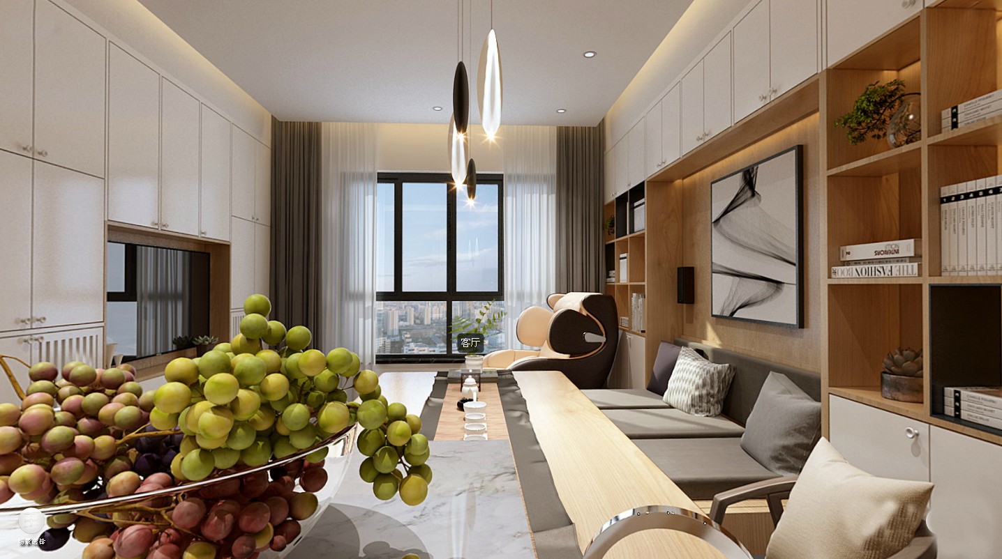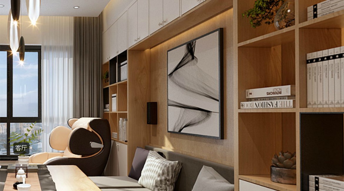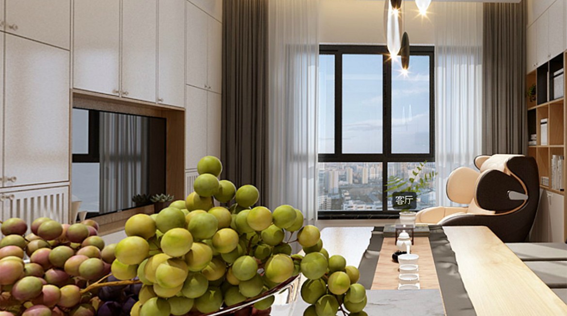 設計理念丨本案在設計上充分考慮中小戶型空間尺度問題,在設計上以現(xiàn)代風格為主,融入簡潔的北歐元素和日式色彩,電視背景沙發(fā)背景運用大面積白色柜子,地面配淺色木紋大板仿磚開放式廚房餐廳客廳一體化(LDK)設計,加上適度的燈光裝飾也使居室空間充滿溫馨的氣息,既能給人在空間得到精神和身體上的放松,同時又能滿足女主人收納儲物以及男主人舒適品茗的要求。