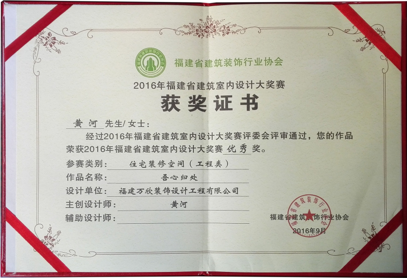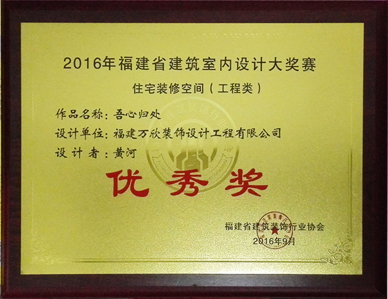 - >萬欣裝飾作品《吾心歸處》榮獲2016年福建省建筑室內(nèi)設(shè)計大獎賽優(yōu)秀獎