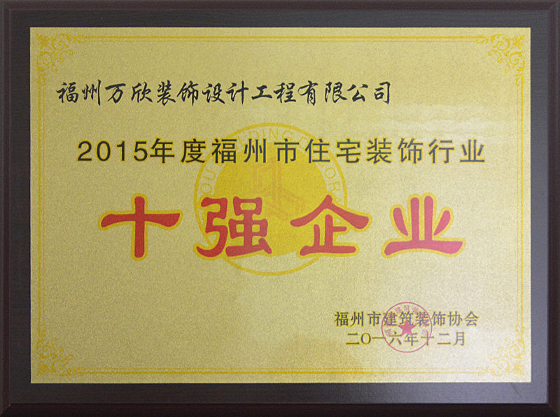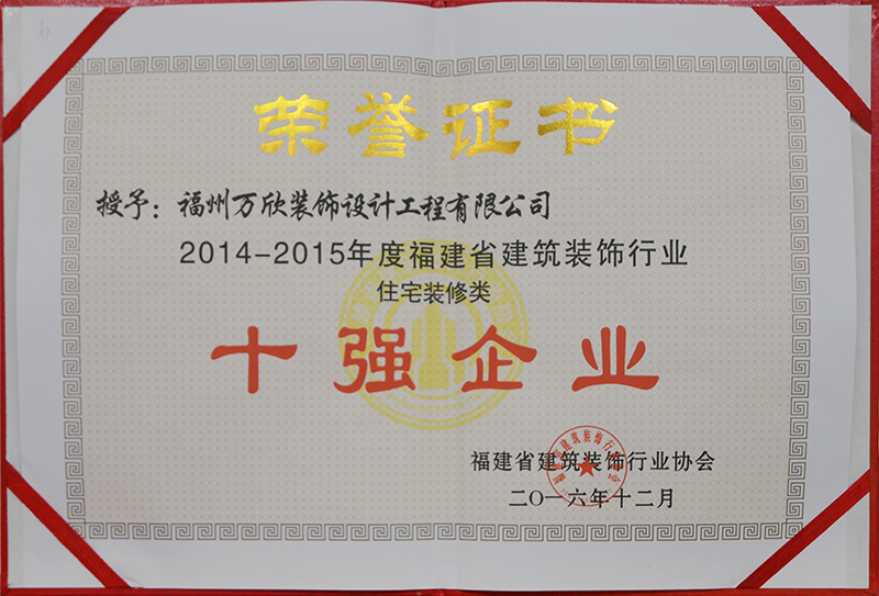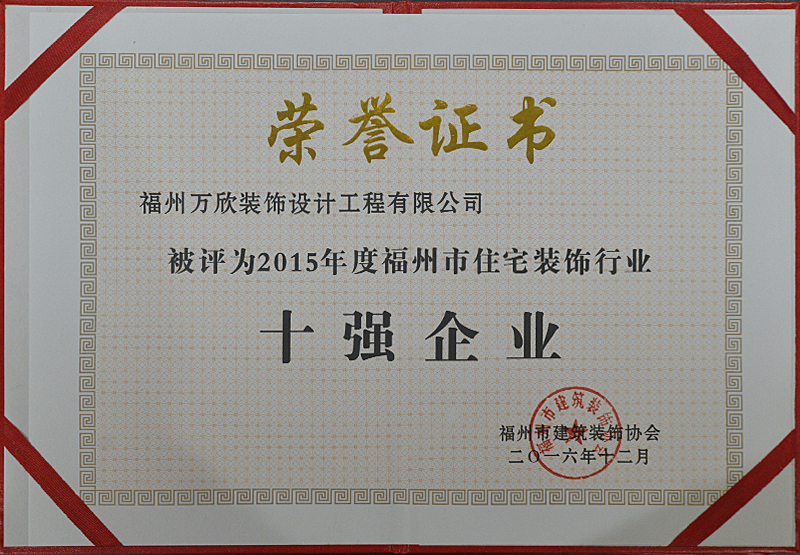 - >萬欣裝飾被評為2015年度福州市住宅裝飾行業(yè)十強企業(yè)