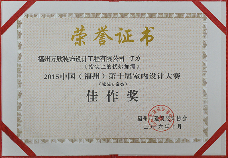 - >萬欣裝飾作品《指尖上的伏爾加河》被評為中國(福州)第十屆室內(nèi)設(shè)計大賽(家裝方案類)佳作獎