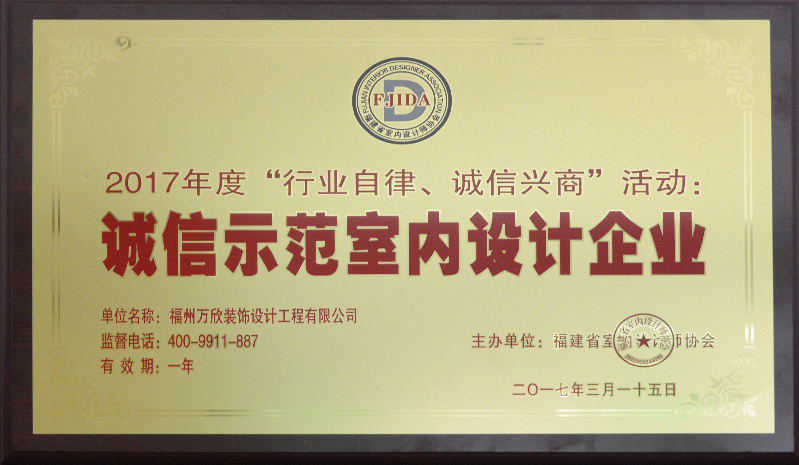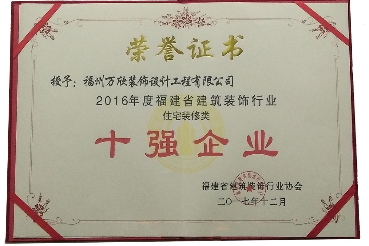 - >萬欣裝飾榮獲2017年度福州市住宅裝飾行業(yè)十強企業(yè)
