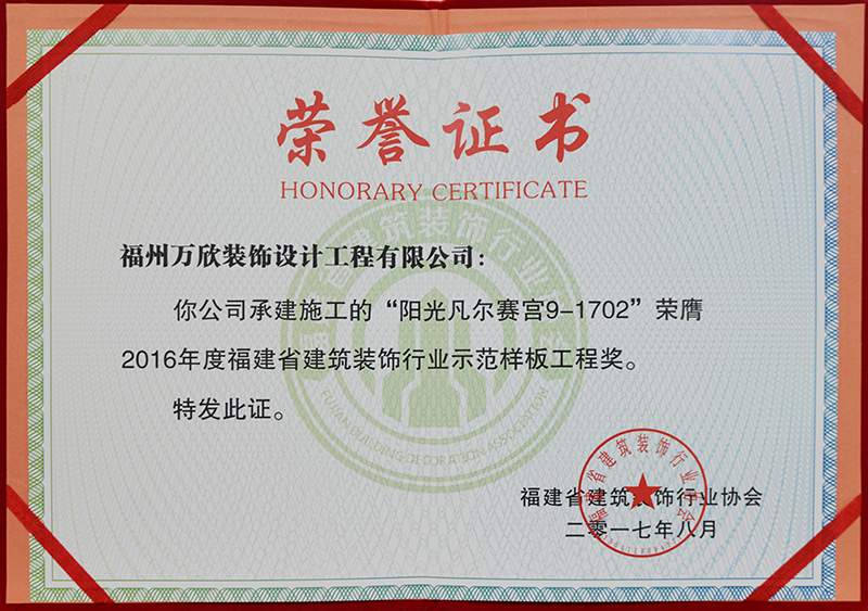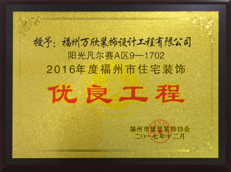 - >萬欣裝飾“陽光凡爾賽宮A區(qū)9#1702”被福州市裝協(xié)評選為優(yōu)良工程