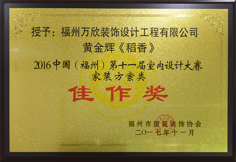- >萬欣裝飾作品《稻香》榮獲中國(福州)第十一屆室內(nèi)設(shè)計大賽家裝方案類佳作獎