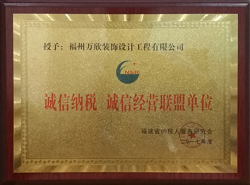 - >萬欣裝飾被評為誠信納稅 誠信經(jīng)營聯(lián)盟單位
