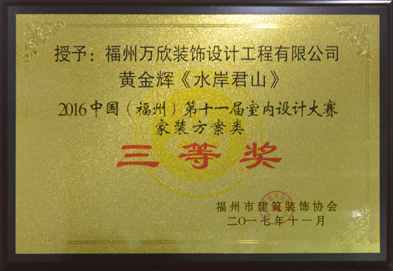 - >萬欣裝飾作品《水岸君山》榮獲中國(福州)第十一屆室內(nèi)設(shè)計大賽家裝方案類三等獎