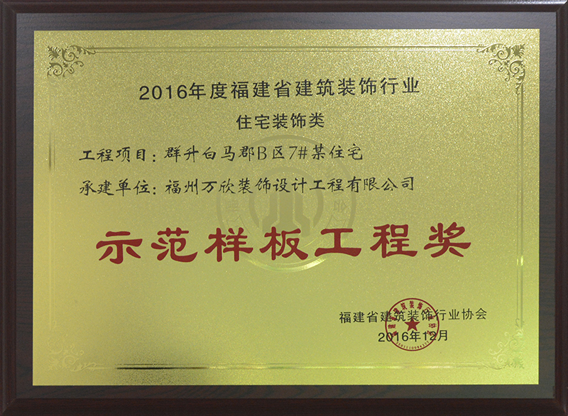 - >“群升白馬郡B區(qū)7#某住宅”榮膺2016年度福建省建筑裝飾行業(yè)示范樣板工程獎