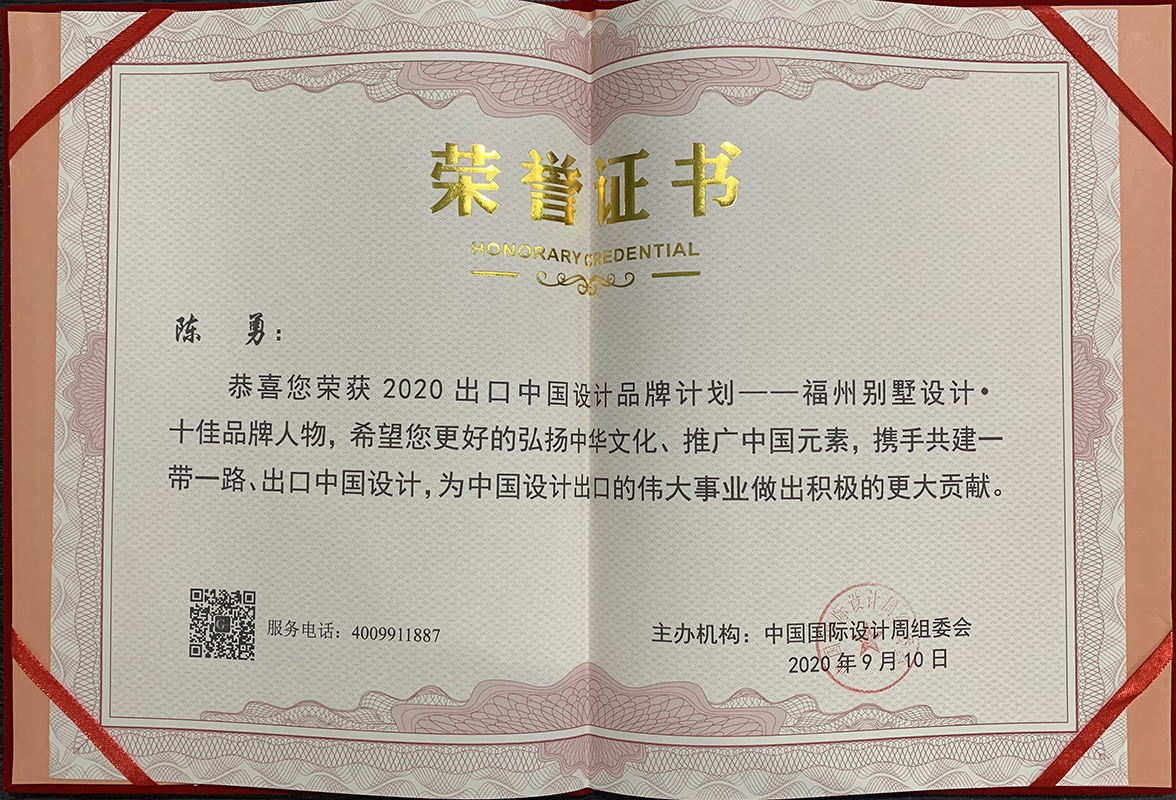 - >萬欣裝飾設(shè)計師陳勇榮獲2020出口中國設(shè)計品牌計劃——福州別墅設(shè)計·十佳品牌人物
