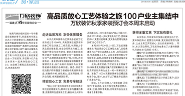 萬(wàn)欣裝飾2014秋季放心家裝預(yù)定會(huì)華麗綻放