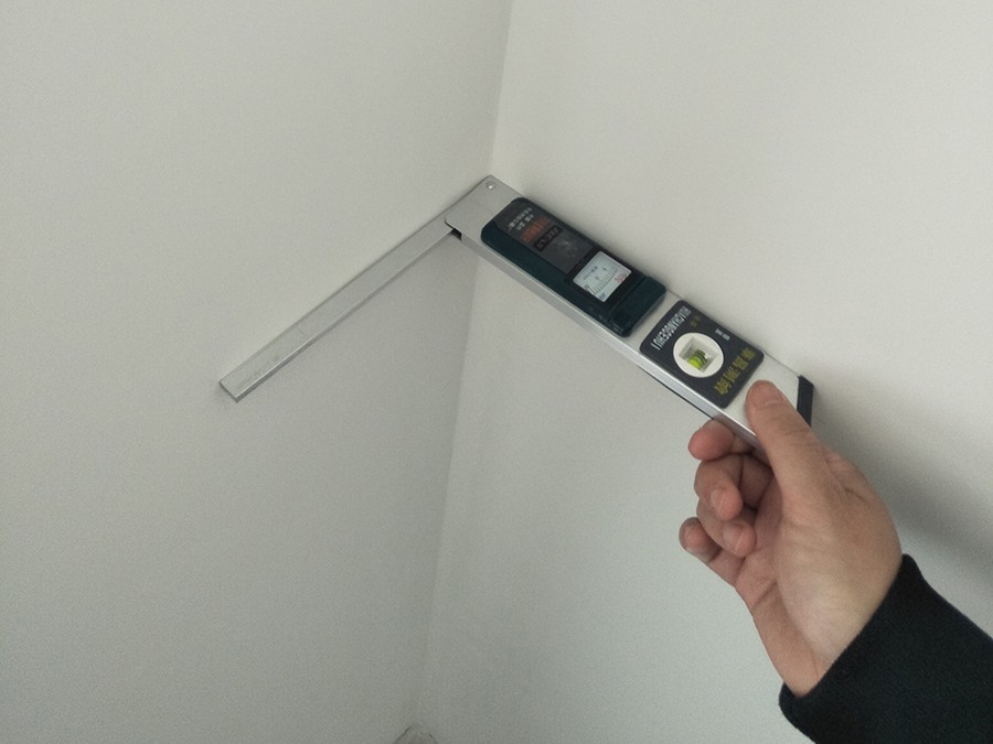 ▲檢查墻面陰陽角的垂直度