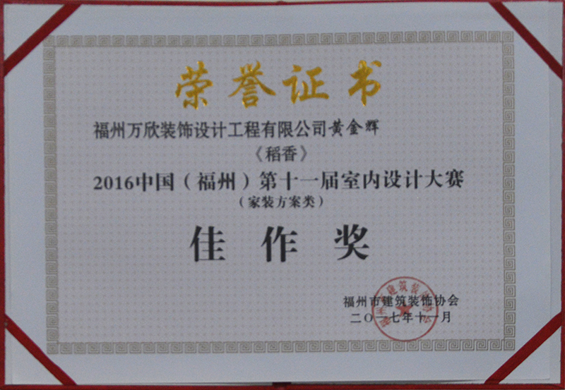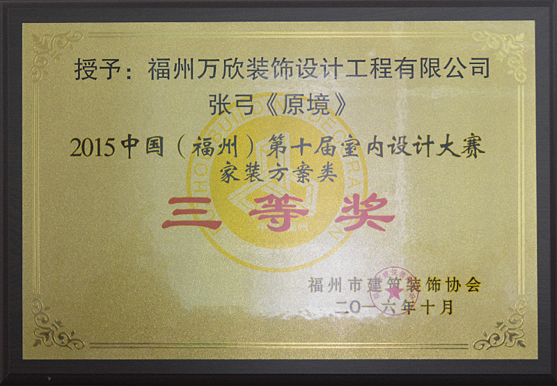 - >萬欣裝飾作品《吾心歸處》被評為中國(福州)第十屆室內(nèi)設(shè)計大賽(工程類)佳作獎