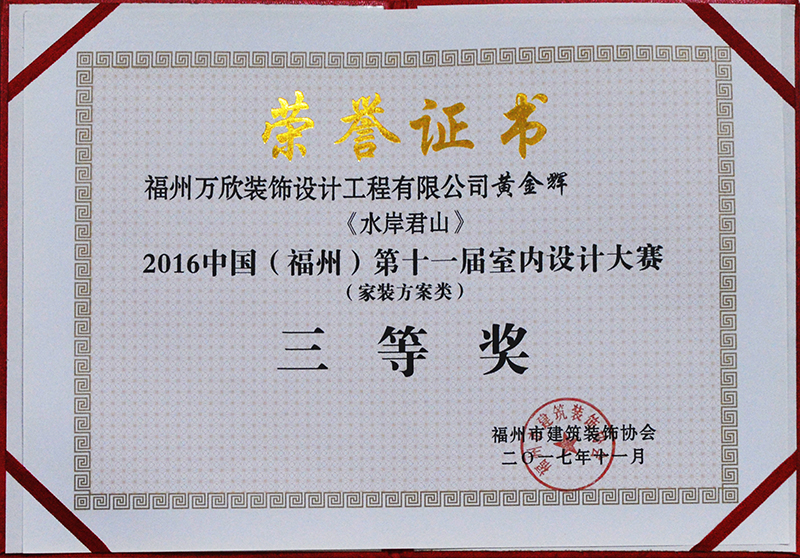 - >萬欣裝飾作品《水岸君山》榮獲中國(福州)第十一屆室內(nèi)設(shè)計大賽家裝方案類三等獎